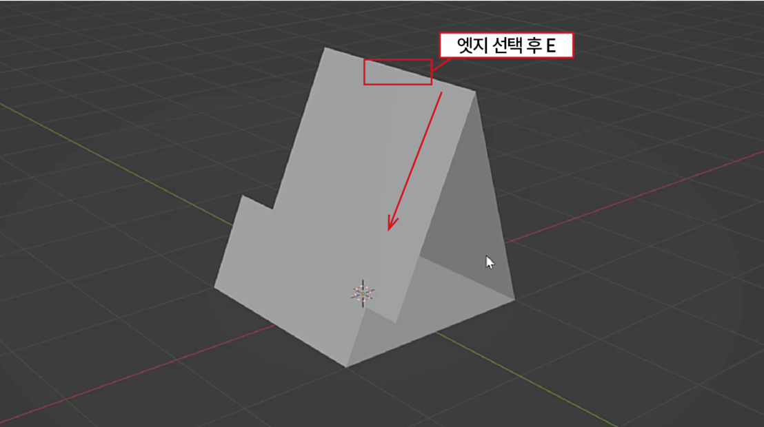 뒤쪽 엣지도 선택하여 E, Z로 뒷면을 뽑아 줍니다.