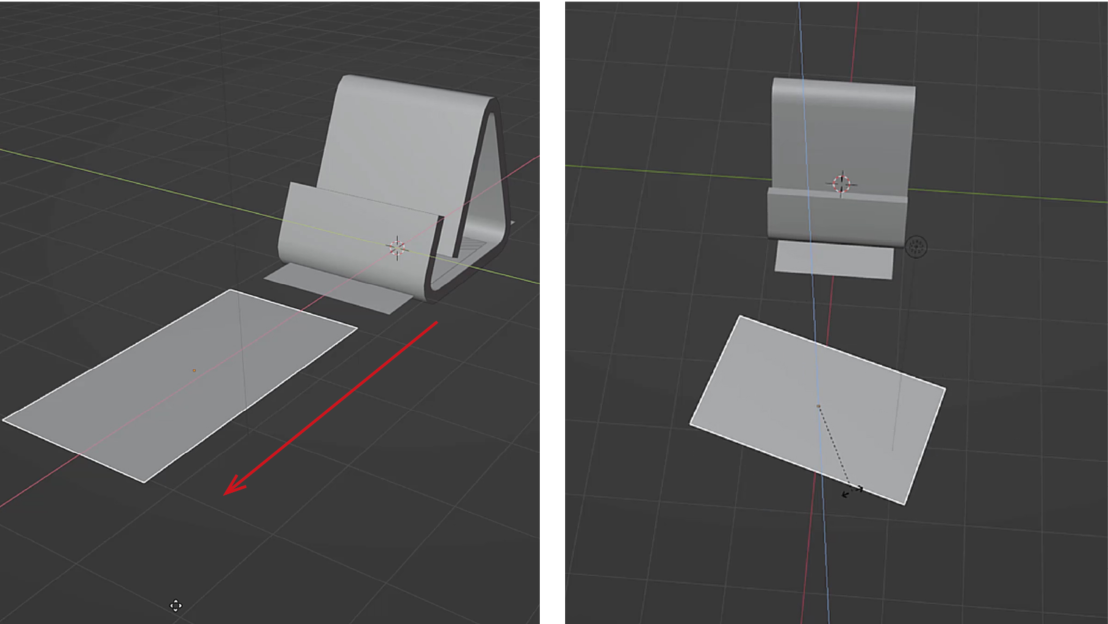 명함 오브젝트를 R로 회전시켜 스탠드 각도와 맞게 회전해 주고, G로 스탠드 위치로 옮겨 줍니다.