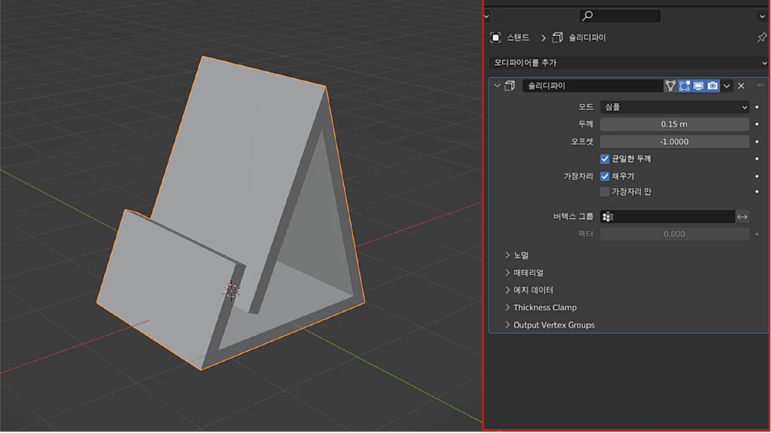 스탠드 오브젝트에 솔리디파이 모디파이어를 추가합니다.