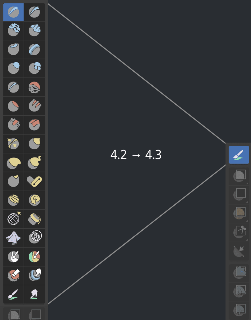 초기 디자인에서 사용성을 향상시키는 기본적인 측면을 포함해 많은 부분이 변경된 것으로 보인다.스컬프팅, 그리스 펜슬, 페인트 등 브러시를 사용하는 모든 워크플로우에 영향을 미치는 변경 사항입니다.