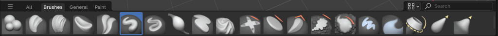 조각과 같은 모드로 전환하면 해당 모드에서 사용할 수 있는 브러시를 찾을 수 있습니다.